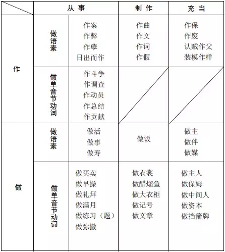 第二,“作”和“做”都有“制作”义,具体的事物习惯写“做”,抽象的事物习惯写“作”。
