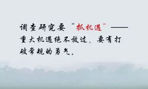 2、调查研究要“抓机遇”——重大机遇绝不放过,要有打破常规的勇气。机遇无处不在,关键是我们的手不能揣着。所谓生活中不缺少美,而是我们缺少发现的眼睛。平常工作和生活中藏着机遇,我们要有意识地寻找和捕捉。比方说回老家过年,我就写了《回乡过年的见闻和建议》; 比方说全室同志利用双休赴江西婺源考察,我就写了《江西新农村建设的九点启示》;再比方说参加省委九次代表大会简报工作,我也写了篇简报工作研究体会文章,并且这些文章都得到了省领导的肯定。遇到重大机遇更要绝不放过。时任中央政治局委员、湖北省委书记俞正声同志联系监利县税费改革,我曾担任县税改办主任,两年时间里,我认真研究税改工作,撰写了多篇调研文章,获正声同志批示10篇,9篇发全省市县区领导干部参阅。我认为最大的机遇就在群众最着急的事情和领导最关心的问题上,调查研究一定要有的放矢而不能无病呻吟,一定要找准群众的“痛处”和领导的“痒处”,“解痛止痒”是调查研究的本质功能也是机遇所在。我的体会是功夫下得有多深,机遇的回报价值就有多大。  这次双丘调研,我本来是半路加入,我又是新兵一个,我和同事们一同获得了省委书记的批示肯定,我不满足,继续努力,获得了中央政治局常委的批示肯定。说实在的,我当时就有迎接新挑战、争取新高度的激动和亢奋。成如容易却艰辛,艰辛更在于不一定能被领导和同事理解认同,虽然在我看来是一件大好事,但办事的过程不一定恰当,或者有“操作不当”的地方。