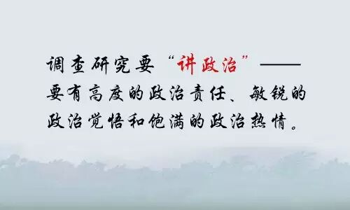 1、调查研究要“讲政治”——要有高度的政治责任、敏锐的政治觉悟和饱满的政治热情。我们长期从事的是农村问题调研,农村问题看起来是经济问题,实际上是政治问题。我们党把三农工作摆在全党工作重中之重的地位,这个地位既是经济地位,更是政治地位。因此我们的调研工作也是一项政治性极强的工作。平常都说与党中央保持高度一致,拥护党的路线方针政策,这不是一句空话,而是要落实到我们调研工作的方方面面,尤其是一些重大问题的调研上。我们一方面要通过调查研究为党出主意当参谋,一方面要通过调查研究更好地执行党的既定路线方针,所以我们的领导经常强调,调查研究必须讲党性、讲政治、讲大局、讲纪律。如果我们把这一条丢掉了,我们就失去了调查研究的生命或者灵魂。实际工作中,我们往往对此重视不够或者忽视这一点,以为调查研究不过是一般性的工作,具体的事务性的工作而已,没必要与讲政治扯到一块。正因为如此,我们有的调查报告就事论事说事情,头痛医头开药方,既不能准确深刻地反映问题分析问题,也不能从根本上从宏观上长远上提出解决问题的办法。因此引不起领导的注意,得不到领导的重视,也就产生不了更实更大作用。 这次我们到赤壁市双丘村调研,更是与平常的乡村调研大不相同,因为赤壁市是中央政治局常委关于学习实践科学发展观的联系点,学习实践科学发展观当时是我们党的重大政治部署,中央政治局常委挂点联系是重大政治行动,双丘村的作法为贺国强同志充分肯定,省委书记亲自安排我们去调研总结,这本身就是一次重大政治活动,所以我们必须讲政治,必须有高度的政治责任,必须有敏锐的政治觉悟,必须有饱满的政治热情。我的理解,政治责任体现在高标准而不是一般标准、高质量而不是平常过得去的质量、出色效益而不是满足于获得批示能够发表的效果层次上。 政治觉悟体现在对科学发展观理论的全面理解上,对中央政治局常委挂点联系活动的深刻领会上,对贺国强同志讲话精神的准确把握上、对双丘村这个典型的正确解读上。政治热情体现在接受任务上、深入调查上、认真研究上,甚至体现在对报告观点的反复研讨上、对报告语言的仔细推敲上、对报告文字的认真校对上等等。