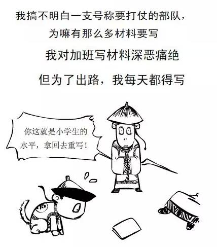 兵小马老弟: 我是一名机关干部,平时很大一部分精力是在写材料。看到老弟的漫画《我是一只想转业的加班狗》,老哥我实在无法淡定了! 你在漫画中说:“我搞不明白一支号称要打仗的部队,为嘛有那么多材料要写。”我要对老弟说的是,我军是一支随时准备打仗的部队,而不只是“号称”。至于“为嘛有那么多材料要写”,我想普及一个常识:材料是一种重要的领导方式。 上级对下级实施领导,除了口头的面对面领导外,以文字材料实施“不见面”领导是行之有效也是最主要的方式。这种做法也是国内外、军内外的普遍做法。 毛泽东的一生中,用过许许多多秘书,也用过他们写过的材料。对一些重要的材料,他老人家都要亲自动手撰写。毛泽东也写材料哦!以美国为例,奥巴马总统也不是每天都面对面给下属布置任务,他也主要靠材料实施领导。美国也要写材料哦!机关干部作为领导的“外脑”,自然要担起写材料的重任了。 老弟说对写材料深恶痛绝,但为了出路,每天都得写。我想劝老弟要尊重工作,不要贬低自己。写材料是一个高尚的职业,也是我们的价值所在,你不写材料,总不能每天给领导拎包、端水、开车门吧?真的这样了,你不但会深恶痛绝,还会顿足捶胸。 你说,你成功写出了“精神自闭、鼠目寸光”,写出了腰椎间盘突出和前列腺炎。我想对老弟说,写材料确实是一个辛苦活。实际上,机关最苦的活是写材料,最见功底的是写材料,最缺的也是能写材料的人。 工作中有的人两遍、三遍,材料都过不了关,甚至推翻重来,这时开始抱怨领导思想老是在变,自己的辛苦付出又白费,表面上如此,实质上在哪里?不是领导的思想老在变,是写材料的人始终没有跟得上思路,归根结底还是自己的水平层次不够啊! 就是自己的水平达到了,仍要有吃苦的精神。胡乔木为毛主席起草讲话,建国初期没有风扇,家中酷热难当,就在澡盆上搁一块板,坐在水里写,田家英为毛主席起草讲话,总是精益求精、超负荷运转,曾经累得吐了血。这两个人,后来都被誉为“党内一支笔”。写好材料,没有捷径可走,都是苦出来的、磨出来的、逼出来的。某种程度上说,加班加点是正常现象,也是认真负责的表现! |