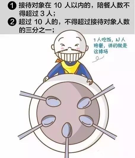 接待对象应当按照规定标准自行用餐。确因工作需要,接待单位可以安排工作餐一次,并严格控制陪餐人数。